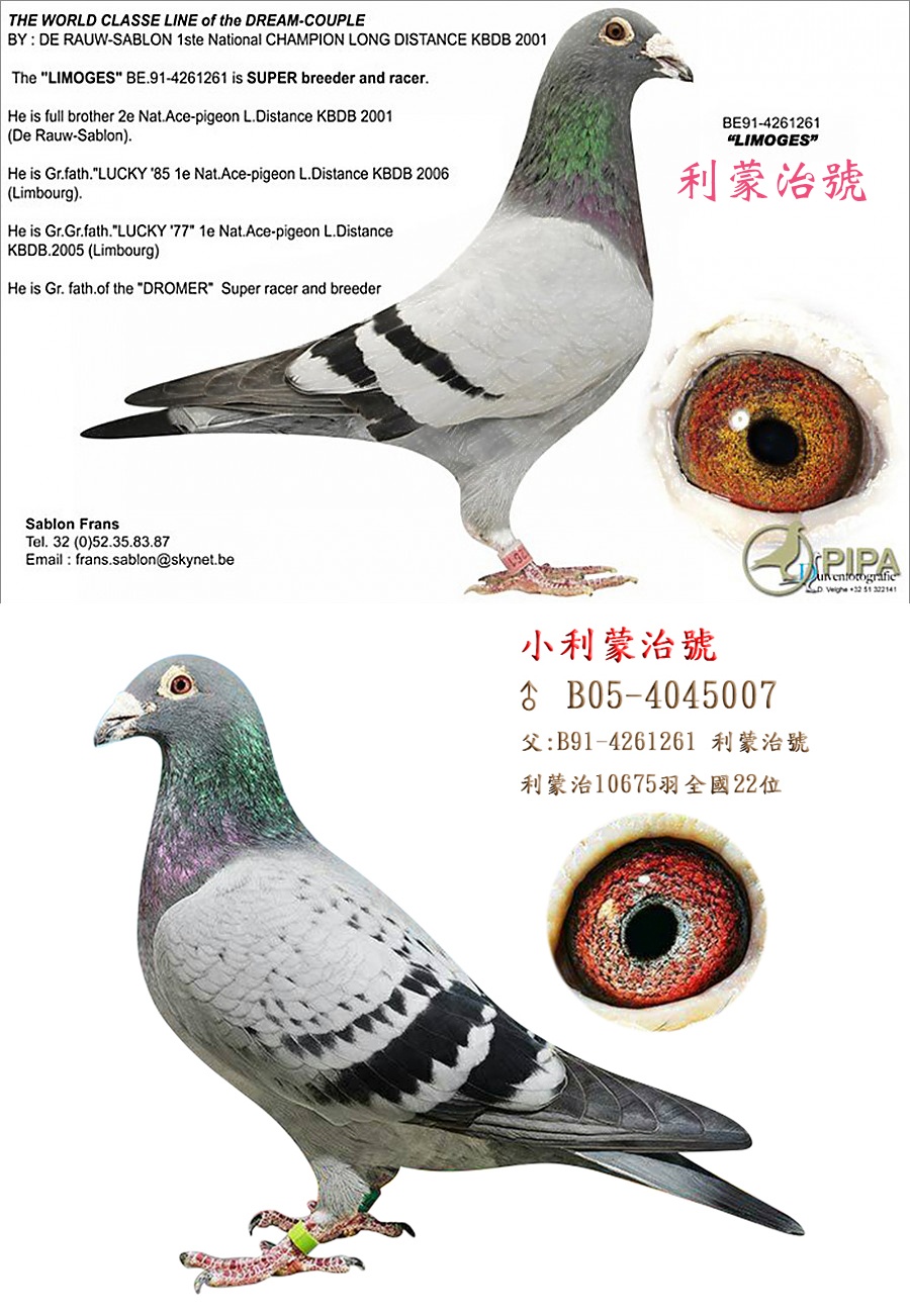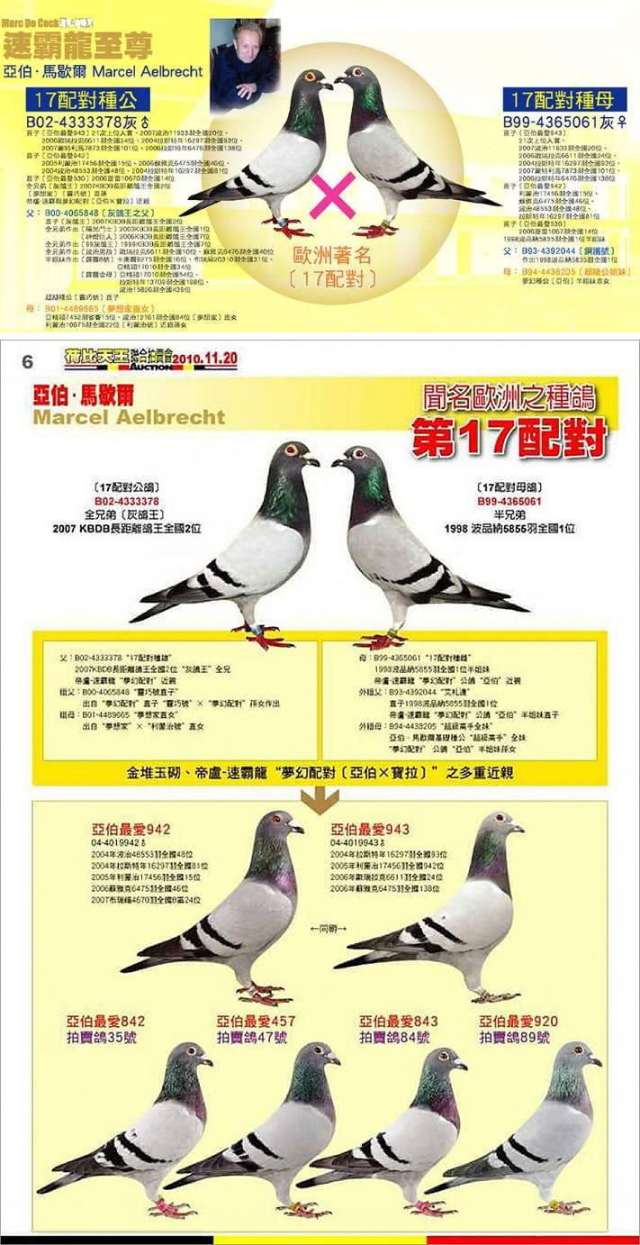 白羽馬歇爾” 馬歇爾.阿布瑞契Marcel Aelbrecht 全兄B04-4019943 榮獲: 07-波治全國11933羽20位 06-歐瑞拉克全國6611羽24位 04-拉索特年全國16297