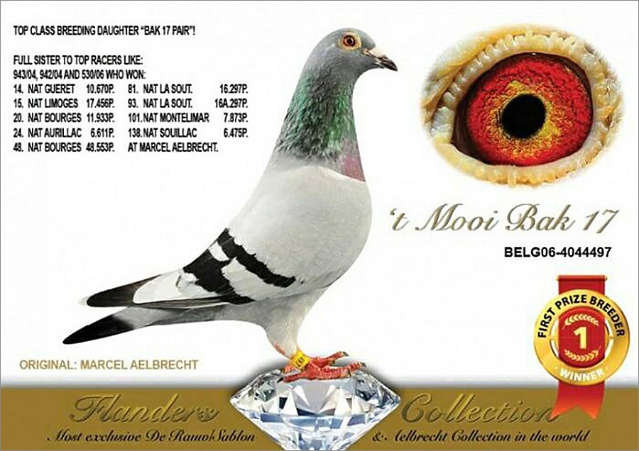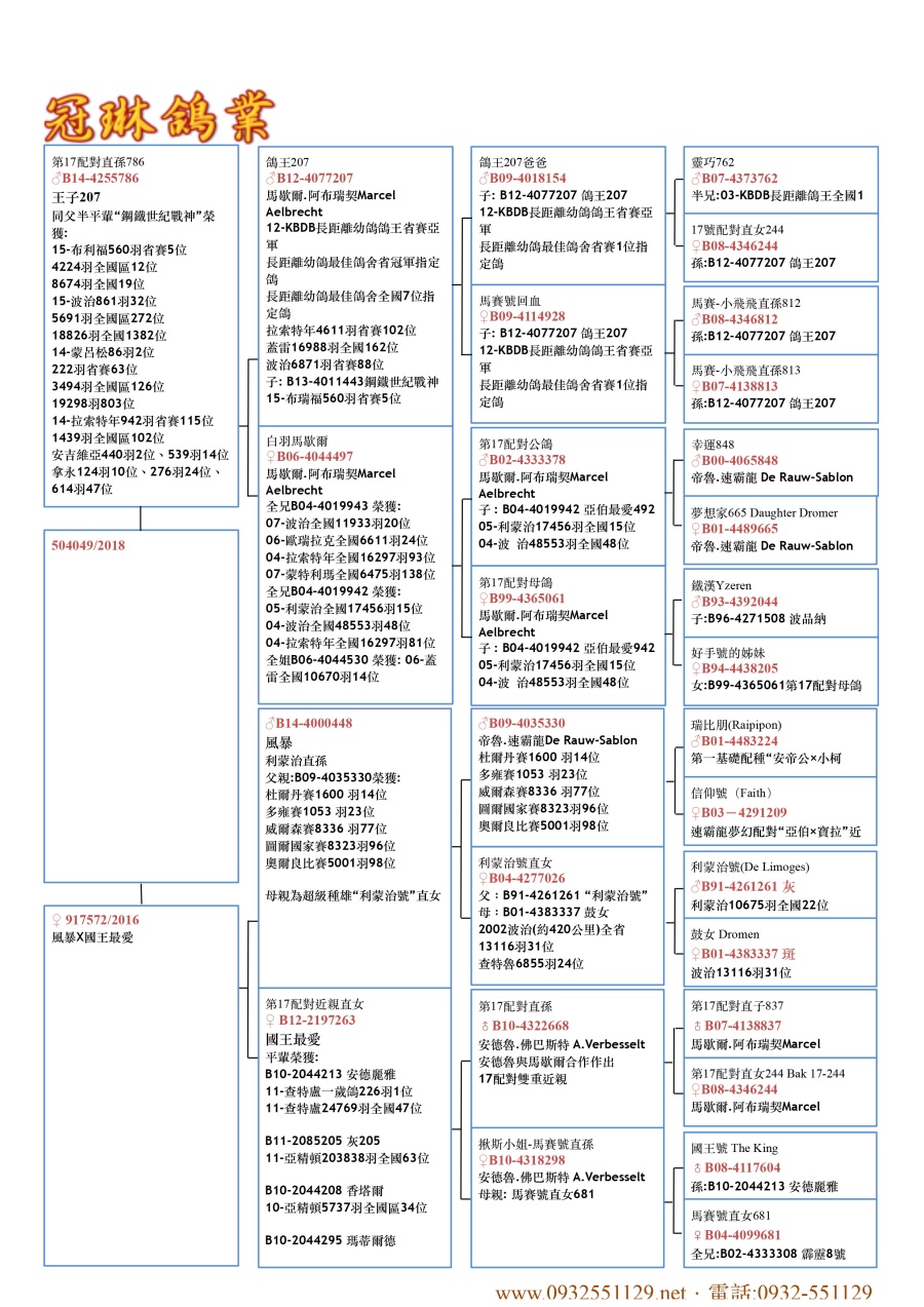 白羽馬歇爾” 馬歇爾.阿布瑞契Marcel Aelbrecht 全兄B04-4019943 榮獲: 07-波治全國11933羽20位 06-歐瑞拉克全國6611羽24位 04-拉索特年全國16297